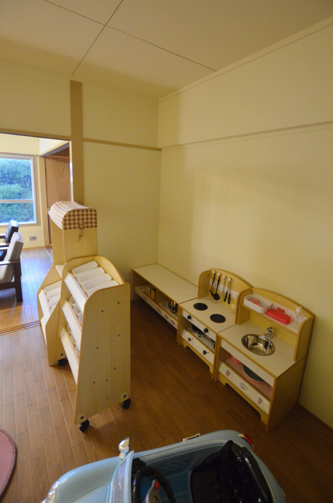 コーナー保育の中でも特に「ままごとコーナー」は「人と人との関係を育む」場であるとよく聞きます。いろいろなことを見立て、人と接しながら遊べる環境は、子どもにとっても良いことなのですね。