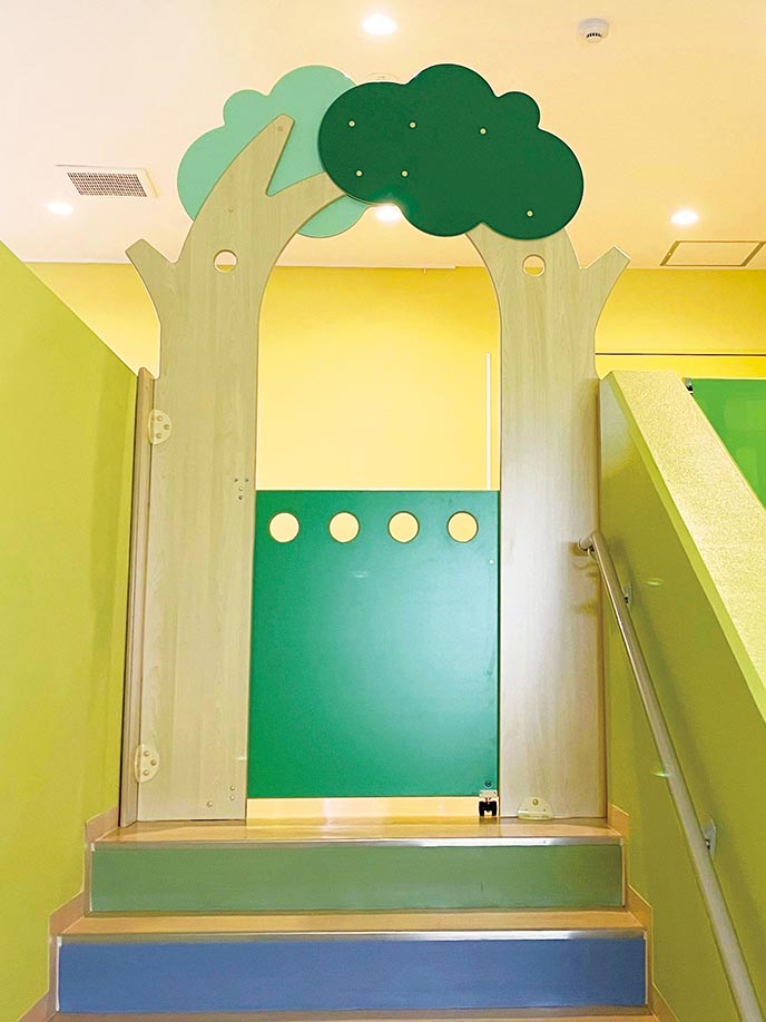 普段から階段を使う場合でも万が一子どもだけで降りることがないように配慮が必要です。あんぜんドアを設置することで保育士がしっかり見守る中で階段を使うことができます。
